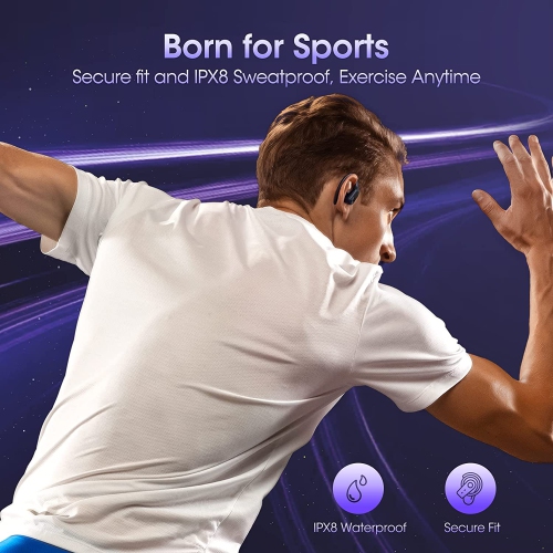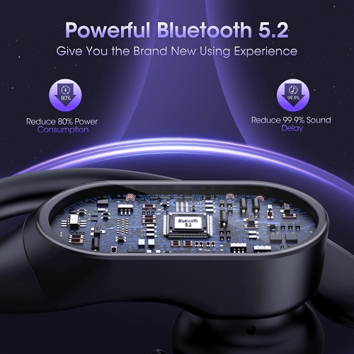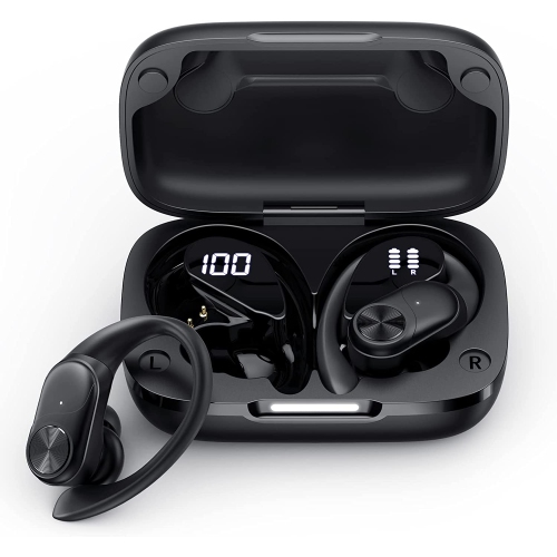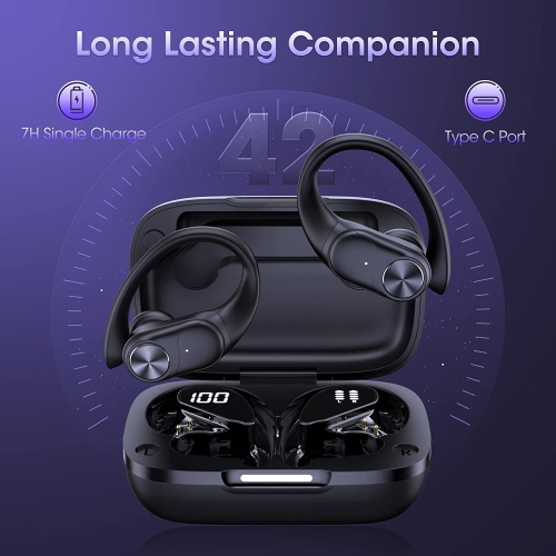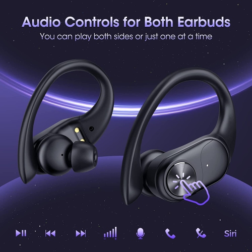 (Intelligent Digital Power Display): Wireless earbuds sport with dual digital power display, it's so convenient to know exactly the remaing power of charging case in the left side and you'll know power level of two earbuds are being charged in the right side when you put them into the charging case. (13mm Drivers with Punchy Basse+ & HD Sound): bluetooth earbuds sport built in 13mm super drivers deliver outstanding rich, powerful and vibrant sounds. Both sport earphones are equipped with highly sensitive microphones inhibiting background noise using Noise Cancelling technology, delivering outstanding crystal-clear calls. (Avanced Bluetooth 5.2 & Easy Button Control) : Bluetooth 5.2 wireless earphones sport can reduce 99.9% sound delay and reduce 80% Power Consumption. With the multi-function button and ergonomic design, Wireless earbuds can fit seamlessly in the ear and manage audio playback or calls effortlessly. Skip songs, launch music and answer cal