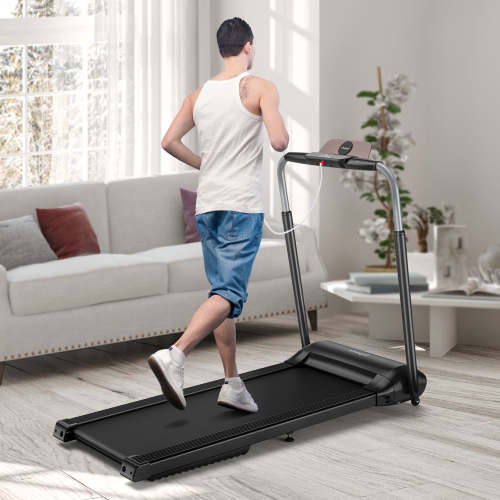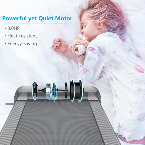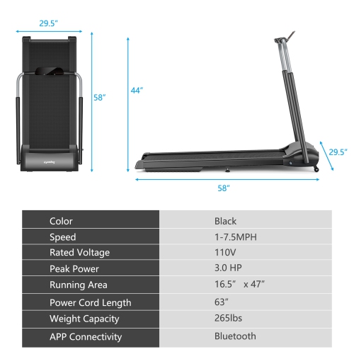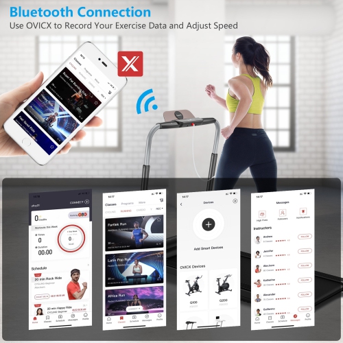 Enjoy your running time with this folding treadmill! Equipped with 3.0HP powerful motor and 5-layer shockproof running belt, this running machine provides comfy and safe running experience for you and noiseless environment for others. Before starting your exercise, you can connect your phone with OVICX APP by Bluetooth, following the appropriate class on the APP. After that, the LED touch screen is convenient to start this treadmill. And it will track your performance, including speed, time, distance, calorie and heart rate. You can choose time/distance/calorie reciprocals, 3 programs (P1/P2/P3) and adjustable speed from 1 MPH to 7.5 MPH based on your fitness goals. After finishing your exercise, just fold and move it to the storage space.