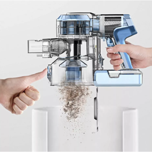 Cordless and easy to maneuver, A11 TANGO's 450W motor drives ultra-quiet, powerful suction up to 120W for a high-performance deep clean on carpets and hard floors. Two brushes customize cleaning on all floor types: the Soft Roller brush is tough on dirt and gentle on hard floors, while the Multi-Tasker brush grabs dirt on all floor types. With 60% longer runtime and 1.5X larger dustbin capacity than A10 HERO, A11 TANGO can replace your traditional corded upright. Premium features include LED headlights, filtration, power trigger lock, and pre-filter cleaning tool.