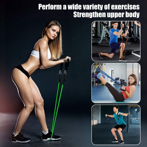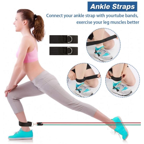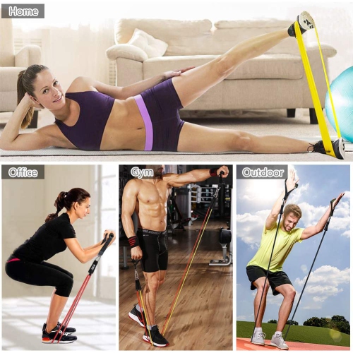 5 x Tube resistance bands ( Yellow: 10lb, Blue: 40lb, Green: 30lb, Black: 50lb, Red: 20lb )