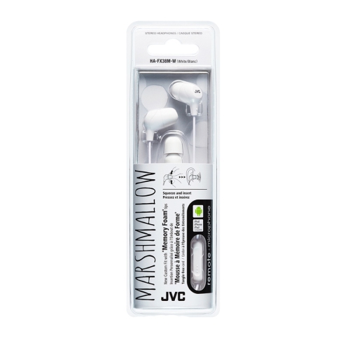 Marshmallow in-ear headphones with microphone / remote control. Soft memory foam tips are available in two sizes for better fit and better sound quality. The microphone and remote control make these headphones a perfect complement for your iPod, iPad, iPhone or Android device.