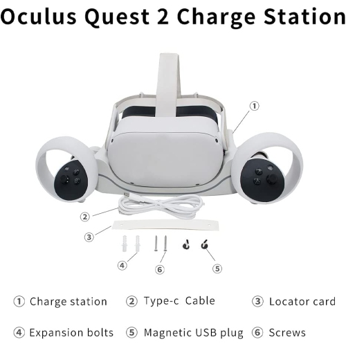 Applicable to Oculus quest 2 VR headset and controller only. Feature: Magnetic charging station wall mount, supports desk and wall mount charging, with adjustable controller bracket, easy to use. UNIQUE DESIGN: there are colorful breathing lights when charging, very beautiful. Multifunction - This product is not only a fast charging station for VR headsets, but also storage for Oculus Quest 2 headsets and touch controller, Strong magnetic adsorption charging, and also it can be hung on the wall as a wall charger. Size: 30 * 11.5 * 8.5cm; Net weight: 270g.