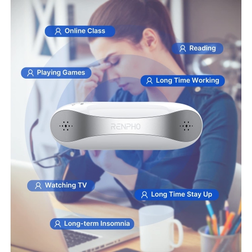 100℉ or 104℉ constant temperature hot compress is like a hot towel on the eyes, and hot towel cannot keep a constant temperature, but Renpho's eye mask can do it. If patients with dry eye can persist in hot compresses for a long time, it will greatly help alleviate discomfort, and for ordinary people , also has a certain preventive effect.