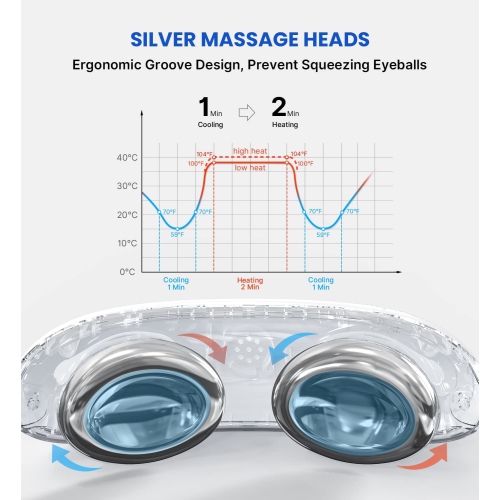 Heating and Cooling Circulation to Your Eyes: Hot compress: 100℉(low), 104℉(high)/Cold compress: 59-70℉