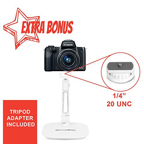 [UNIVERSAL DESIGN] Spring-loaded clamping mechanism ensures a secure fit for your phone or tablet. All areas of contact with your device feature protective silicone padding to prevent scratches while keeping your device firmly in place. Extend the clamp 5.0 – 8.75 inches/ 12.7cm-22.2cm apart to accommodate a wide range of devices. BONUS: For added usability, an adapter with a ¼-20” screw is also included, giving you the option to mount a camera or portable projector.