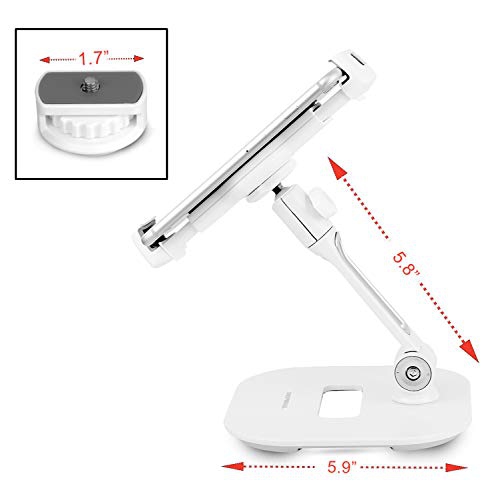 [STURDY MATERIAL] Heavy aluminum metal base and arm form a highly rigid structure to sustain various tablets and smartphones Between 4.7"-12.9" inches and up to 2.2 Ibs/1kg, ensuring wobble-free security and no tilting or falling devices.
