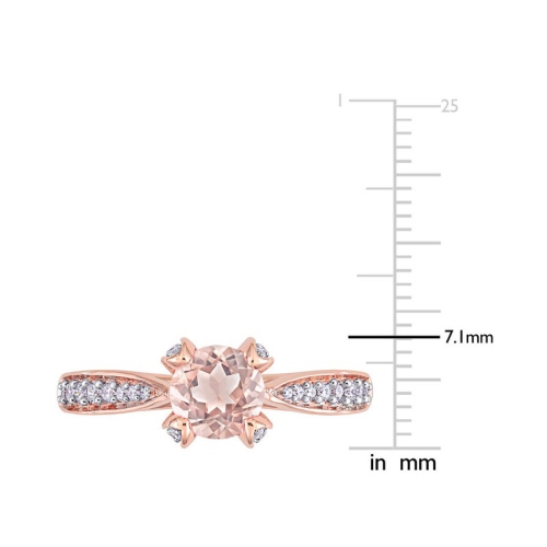 Beautifully Crafted in 14K Rose Gold with a Polished FinishStone Type: Morganite; Color: Pink; 0.717 CTW; Quantity: 1; Brilliant Cut; Round Shape; Dimensions: 6x6 mm; Natural; Prong SettingStone Type: Diamond; Color: H-I; Clarity: I2-I3; 0.19 CTW; Quantity: 24; Brilliant Cut; Round Shape; Natural; Prong SettingThis item ships in signature jewelry box packaging, ready for gift-giving with a classic, elegant look and feelThis Diamond Engagement Ring is the perfect gift for any bridal engagement, birthday, anniversary, graduation, stocking stuffer, holidays, thank you, thinking of you, Christmas, Mother's Day, Valentine's Day or for any reason at all
