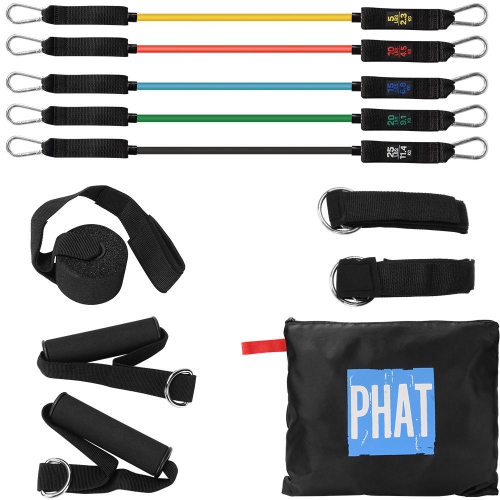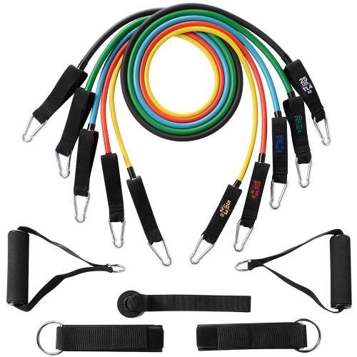 UP TO 75LBS FITNESS BANDS SET -Yellow (5 lbs), Red (10 lbs), Blue (15 lbs), Green (20 lbs), Black (25 lbs). This weight labeled gym bands allow you to choose different resistance level to vary the intensity of your workout.