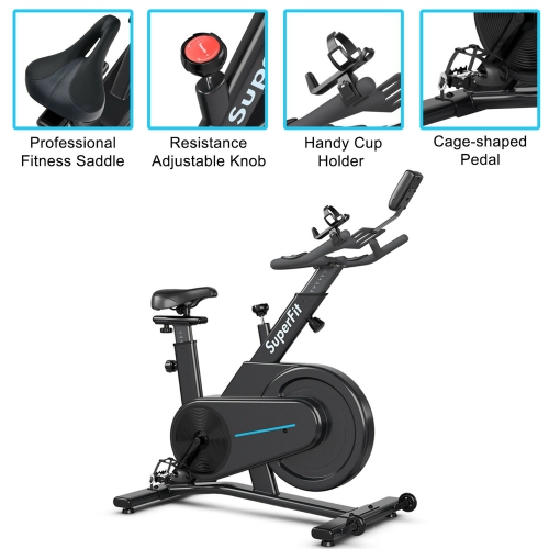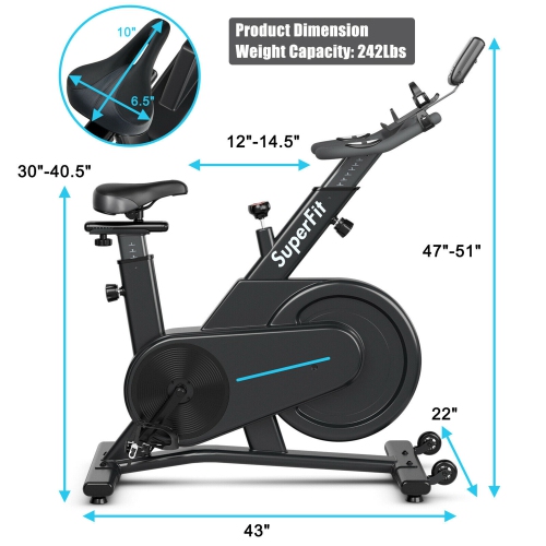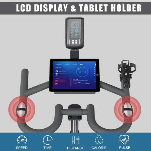 The 22lbs magnetic-resistance flywheel helps simulate the ride of a real road bike, and keeps the exercise bike steady and securely riding. And the smooth transfer belt drives system results in a virtually silent and stable cycling experience. With sturdy steel material and stable construction, our portable exercise bike can support up to 242 lbs. Plus, equipped with an LCD display, you can track speed, time, calories burned, distance and pulse in time. In addition, the professional fitness saddle can be adjusted according to your needs and ergonomic soft cushions won't let you feel tired after riding for several hours.