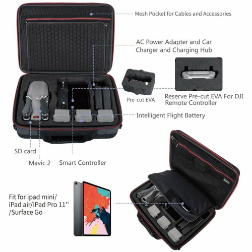 ·Ultra Large Capacity: You can neatly store accessories such as DJI Mavic 2, DJI smart transmitter, 3 batteries, AC power adapter, tablet, and other small items. This one case can work well when you go out.