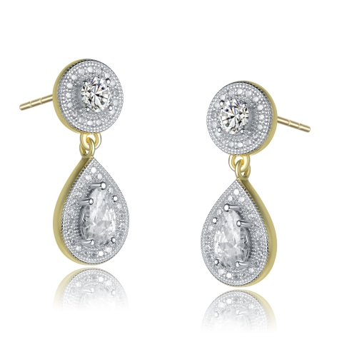 Rozzato Sterling Silver Gold Plated Cubic Zirconia Teardrop Earrings
