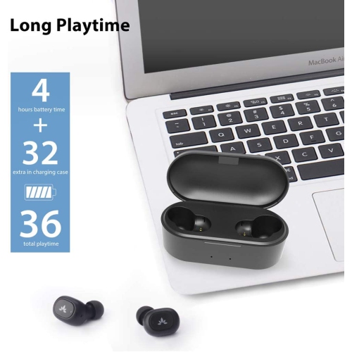 (Great Fit Even for Smaller Ears)An ideal solution for those who have difficulty finding earbuds that fit. Ergonomically designed to fit all ear shapes and sizes comfortably, suitable earbuds for women and for kids. (NOTE)If the S size earbud tips still don't fit you, please contact us for XS earbud tips. (PREMIUM SOUND QUALITY) Featuring Bluetooth 5.0 for clear signal with reduced music dropouts to retain Hi-Fi Stereo Sound. Our earbuds feature noise cancellation, well balanced bass, treble and mid tones to deliver the ultimate listening and calling experience. (LIGHTWEIGHT & COMFORTABLE) With a small low profile design, our in-ear earbuds are feather-light & ergonomic to fit comfortably inside your ear. You will forget you are even wearing them! (CHARGE ON THE GO) True wireless earbuds that lasts up to 4 hours per charge. Get up to 32 hours of extended playtime with the convenient portable charging pod that doubles as a power bank. Never worry about running out of power while o