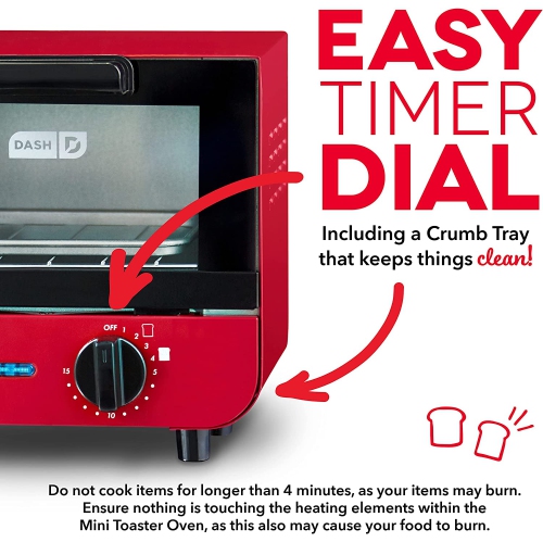 DASH Mini Toaster Oven Cooker for Bread, Bagels, Cookies, Pizza, Paninis & More with Baking Tray, Rack, Auto Shut Off Feature - Red