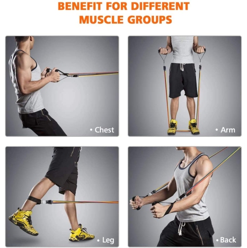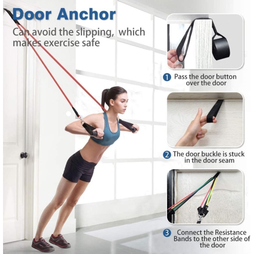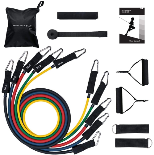 Resistance Bands Set, Exercise Bands Up to 100 LBS, Resistance Bands with Handles, Updated with Ankle Straps, Door Anchor, Workout Bands for Building Muscle and Keeping Healthy at Home, Gym