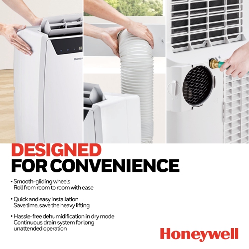 Stress-free auto evaporation in cooling mode -- no bucket to empty (except in areas with high humidity). Built-in dehumidifier removes up to 51 pints/24 hours with continuous drain option for long unattended operation.
