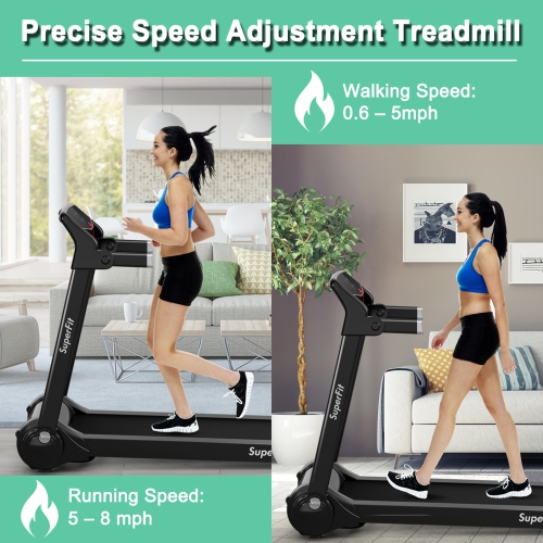 This Fitness Treadmill features a fitness APP and phone holder that will add entertainment and accessibility during any workout routine. Besides, it features a digital monitor that tracks your speed, time, distance, pulse and calories which makes it easier to track your fitness goals. What's more, the spacious running area and wear-resistant running belt provide you comfortable exercise experience, and the safety key provides you a double protection. With folding and moveable design, it's an ideal sports facility for home, gym, and office. Being a better you is an easier road with our folding electric treadmill!