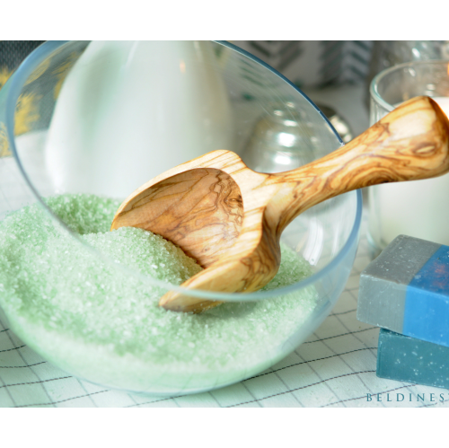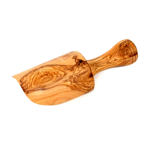 This beautiful olive wood scoop is completely handcrafted by the finest artisans in North Africa. These beautiful pieces of art are made from a solid piece of durable and dense olive wood that is sourced from trees that no longer produce fruits. Stunning unique grains can be found in every one of our bath salt scoops and vary from simple patterns to extremely dark complex ones. Every olive wood scoop has been made from aged olive wood and treated with only olive oil, so they are completely organic. The olive wood scoops are never made using bleach, dyes or chemicals. This wooden scoop can be very handy for keeping it in a big container of flour and perfect for scooping flour from your jars into your mixing bowl. Please note: Due to the handcrafted of the grained olive wood product, all items might be slightly different; each item is