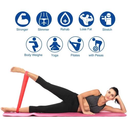 ★ VERSATILE APPLICABLE: Resistance bands set in different thicknesses - 0.35mm (2-5 kg / 5-10 lbs), 0.5mm (5-7 kg / 10-15 lbs), 0.7mm (7-9 kg / 15-20 lbs) 0.9mm (9-13 kg / 20-30 lbs) and 1.1mm (13-18kg/30-40lbs). Each exercise bands resistance has a length of 60cm (23.5 inches) and a width of 5cm (2 inches). For more resistance during training, you can use multiple bands or knot together. The optimum resistance level according to your taste. Perfect for workout, pilates, yoga, rehab etc.