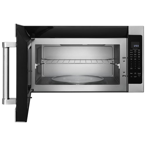 Cookshield finish makes it easy to wipe the interior of the microwave clean without harsh chemicals so it looks clean and bright longer