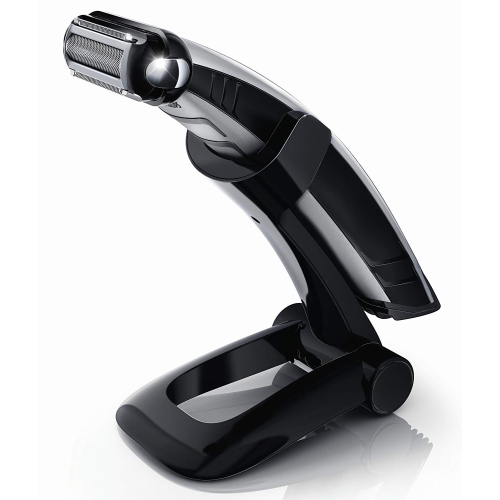 For an all-in-one grooming solution, the Body groom 7000 features a dual-end design. At the top of the groomer, a unique 3-D pivoting head closely follows your body's contours for a skin-friendly shave. Plus, the head includes integrated pre-trimmers located on both sides, allowing you to achieve a close shave without having to go over the same area twice. At the bottom of the Body groom 7000 is a high-performance trimmer with cutting capabilities that provide refined grooming. The trimmer features rounded blades and combs to prevent scratches, and it lets you select from five length settings--from 1/8 inch to 11/25 inch--so you get the look you want with no hassle and no attachments needed.