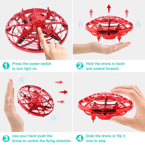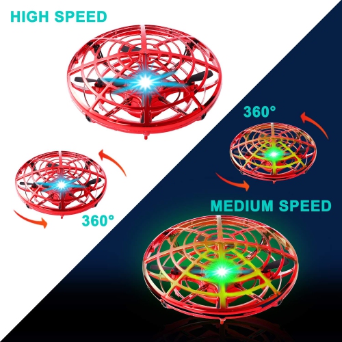 More Fun for Kids This small flying ball is light and small in size, suitable for children to play with. Just need to throw it in the air after turn on, the levitation drone will fly itself, (the indicator light begins to turn green flashing means it is ready), and flip the UFO over and it will stop flying automatically. Cool led light, avant-garde style, easy using make the drone popular among teenagers