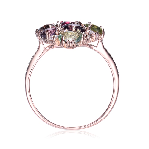 Rozzato Sterling Silver Rose Gold Plated Multi Colored Cubic Zirconia Pave Ring Size 6
