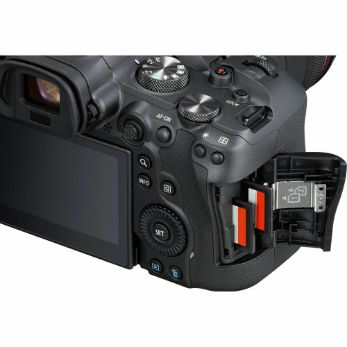 Complementing the imaging capabilities, the R6 sports a bright and detailed 0.5" 3.69m-dot electronic viewfinder, with a high 120 fps refresh rate, and a rear 3.0" 1.62m-dot touchscreen LCD with a vari-angle design to accommodate vlogging needs as well as benefit working from high and low angles. Additionally, dual SD UHS-II memory card slots offer flexible storage and there is of course Bluetooth and Wi-Fi for wireless sharing and remote camera control.