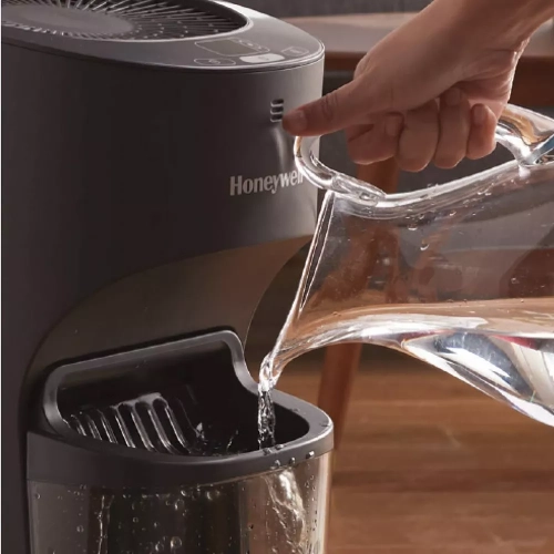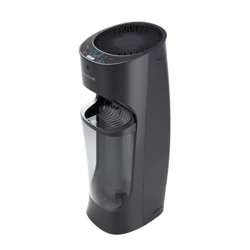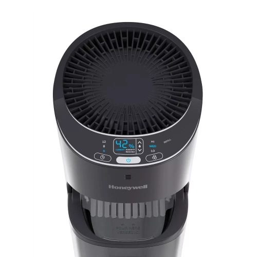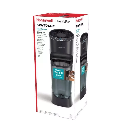 Enjoy the soothing benefits of filtered, invisible moisture with the Honeywell Top Fill Tower Humidifier. This cool moisture humidifier can help temporarily relieve dry air discomforts, such as an itchy throat, nasal congestion and dry eyes. Designed to humidify large rooms, the Honeywell Top Fill Tower Humidifier provides a space-spacing tower design, with two easy ways to fill: at the humidifier with a pitcher, or at the sink or tub. The programmable digital humidistat lets you personalize your comfort level: the humidifier will cycle on and off to maintain the humidity level you set, without over-humidifying the room. Electrical Plug Power Source Product is powered by electrical outlet