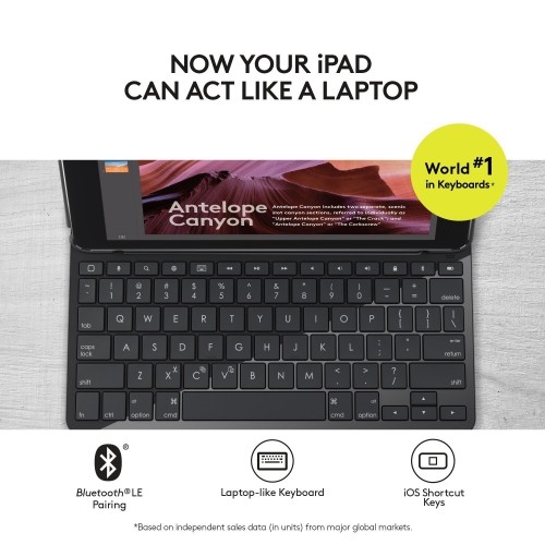 Comfortable, fast typing thanks to a laptop-like keyboard with familiar layout and well-spaced keys 4 years battery life with replaceable coin cell batteries Dedicated row of iOS shortcut keys for one-tap to Home, Siri, Screen brightness, Search, Media controls, Volume controls and more Advanced Bluetooth LE for reliable connection to iPad and longer battery life Protective iPad case helps safeguard both sides of iPad from bumps, scratches and spills Logitech has different serial numbers for packaging vs. product, please keep your receipt for warranty purposes.Refurbished.