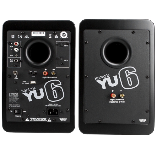 Satisfy your craving for powerful, full-impact sound with YU6. Armed with a formidable Class D amplifier pumping out 200-Watt peak power, YU6 will have you questioning what it really means to be loud. Its 5.25-inch Kevlar® drivers and 1-inch silk dome tweeters inject detailed sound into every square inch of living space, evoking emotions that can only be expressed with an ear-to-ear grin.SILK DOME TWEETERS. YU6’s 1-inch tweeters are made from silk to deliver a high-frequency range that is bright and refined. Their dome shape improves sound dispersion to ensure your ears capture every sound, regardless of where you are in the room.Unmatched connectivity. Inspired by an equal appreciation for digital and analog, YU6 gives you the freedom to enjoy all your devices. Connect a turntable via a built-in phono preamp, transmit high fidelity audio from your computer or TV with Optical TOSLINK, or sit back and enjoy your newly curated playlist with Bluetooth 4.0. With five inputs and a subwoofer output, YU6 brings all your sound to life.YU6 comes equipped with a built-in phono preamp, allowing you to easily connect any vintage or modern-day turntable. Toggle between line-level and phono with a simple flip of a switch, and reduce noise using the provided ground terminal.STREAMING. Play tunes from the palm of your hand. Featuring integrated Bluetooth 4.0 with Qualcomm® aptX™ technology, YU6 lets you stream high-quality audio directly from any Bluetooth-enabled device. Sit back and enjoy your carefully curated playlist from anywhere in the room.Take your desktop setup to the next level by connecting YU6 to your computer via the RCA, AUX or Optical TOSLINK inputs.Bring your movies to life. Enhance any cinematic experience with high-fidelity sound by connecting YU6 to your TV via one of two optical TOSLINK inputs.SIGNAL DETECTION. Automatic standby and power-up mode conserves power when you’re away and continues playback when your music starts playing.EASY CHARGING. Use the provided USB charging port to conveniently power your phone, smart home or casting device directly through your speakers.DRIVERS•1″ Silk Dome Tweeters•5.25″ Kevlar® DriversAUDIO•Class D Amplifier•200W Peak Power (100 Watts Total RMS)•Frequency Response: 50 Hz – 20 kHzINPUTS•3.5mm mini-jack AUX•RCA with Phono Switch•2 x Optical (TOSLINK)•Bluetooth™ 4.0 with Qualcomm® aptX™OUTPUTS•Subwoofer•USB Charge 5V 1AWHAT'S IN THE BOX•Remote with Batteries•Power Cord•Speaker Wire (16′)•3.5mm Auxiliary Cable (6.5′)•8 x Rubber Feet•ManualWEIGHTS & MEASUREMENTSDimensions (each speaker):•6.9” W x 8.1” D x 10.7” H (17.5 x 20.5 x 27.2 cm)•Net Weight (active): 11.4 lb (5.2 kg)•Net Weight (passive): 8.7 lb (4.0 kg)•1/4″-20 Threaded Mounting Hole