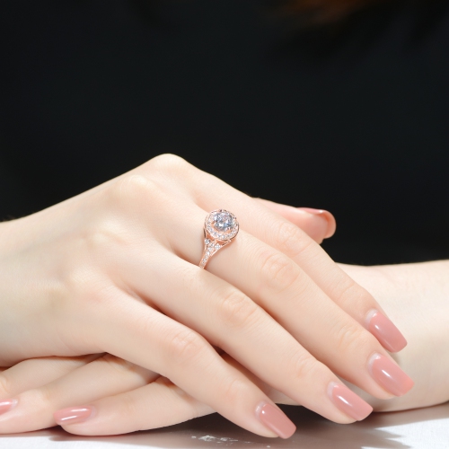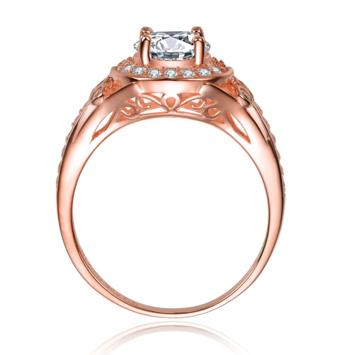 Rozzato Sterling Silver Rose Gold Plated Cubic Zirconia Halo Engagement Ring Size 7